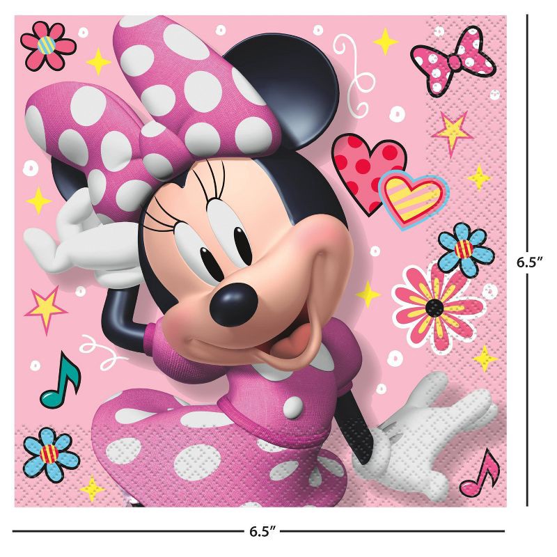 - Paper napkins feature Minnie Mouse artwork