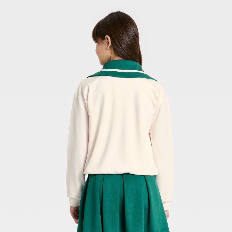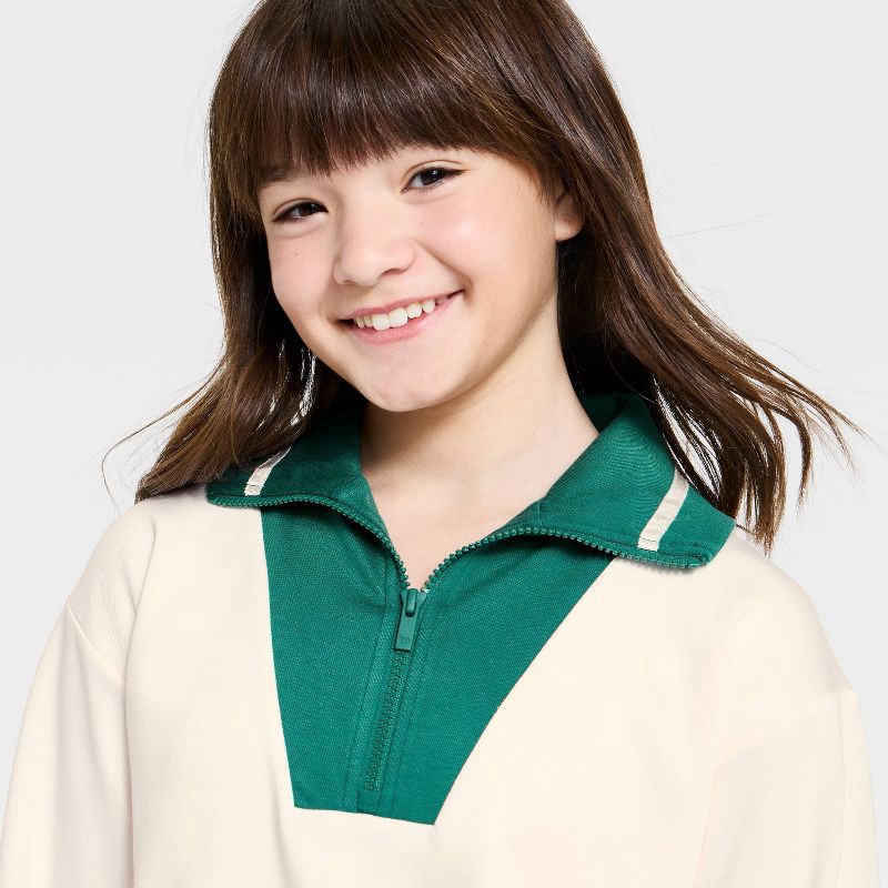 Girls' Pique 1/2 Zip Pullover Sweatshirt - All In Motion™ Cream XS