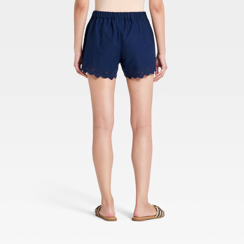 Women's Embroidered Linen Pull-On Shorts - A New Day™ Navy Blue S