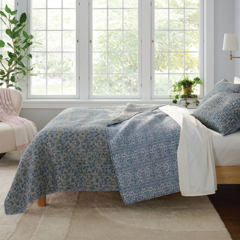 Full/Queen Printed Floral Gauze Reversible Quilt Blue - Threshold™