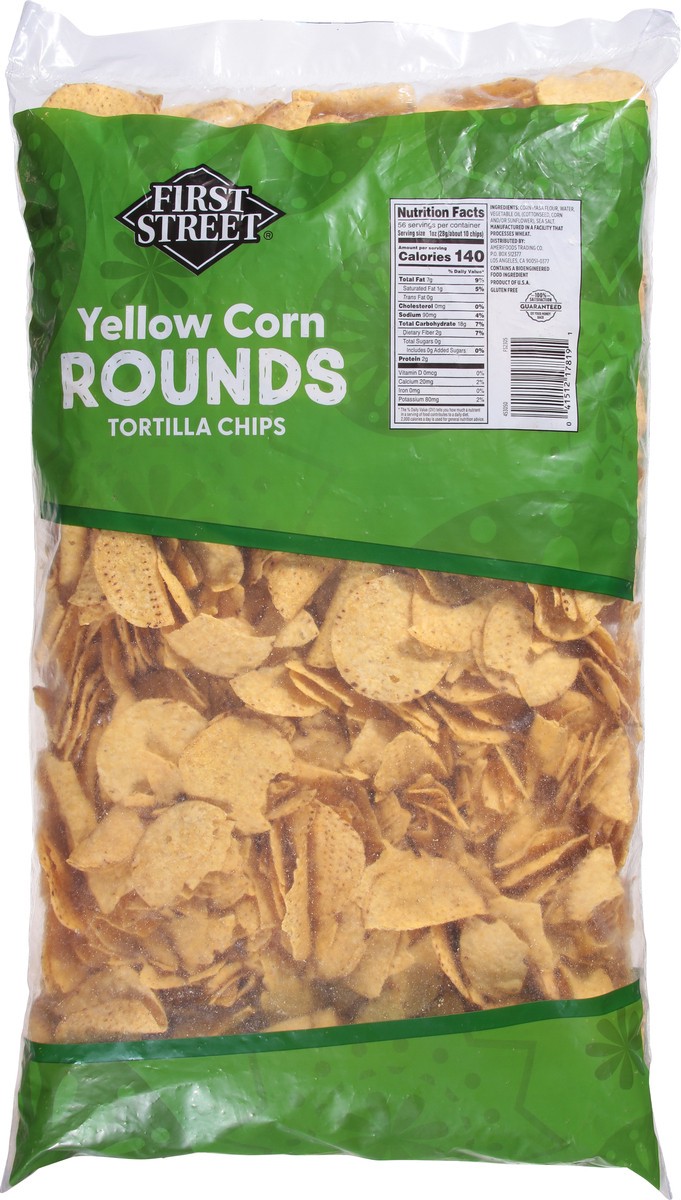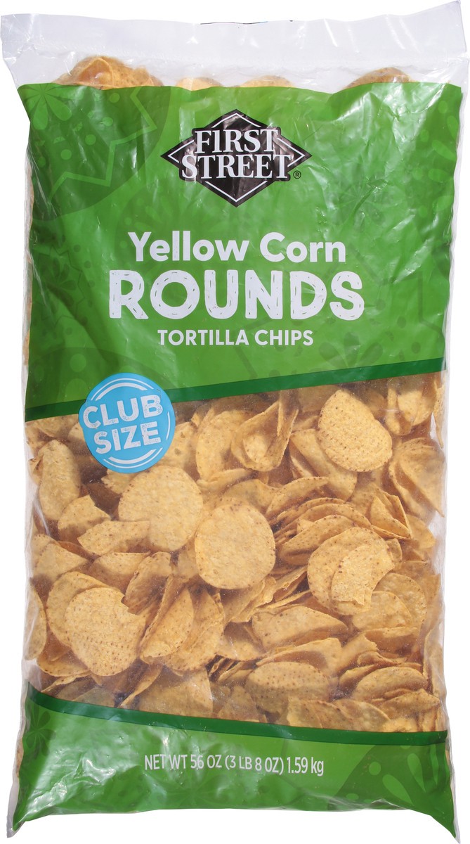 First Street Yellow Round Tortilla Chips, Dip ready. First Street Yellow Round Tortilla Chips are crispy, salted, and sturdy. The perfect shape for scooping up salsa, guacamole, and queso dip.
