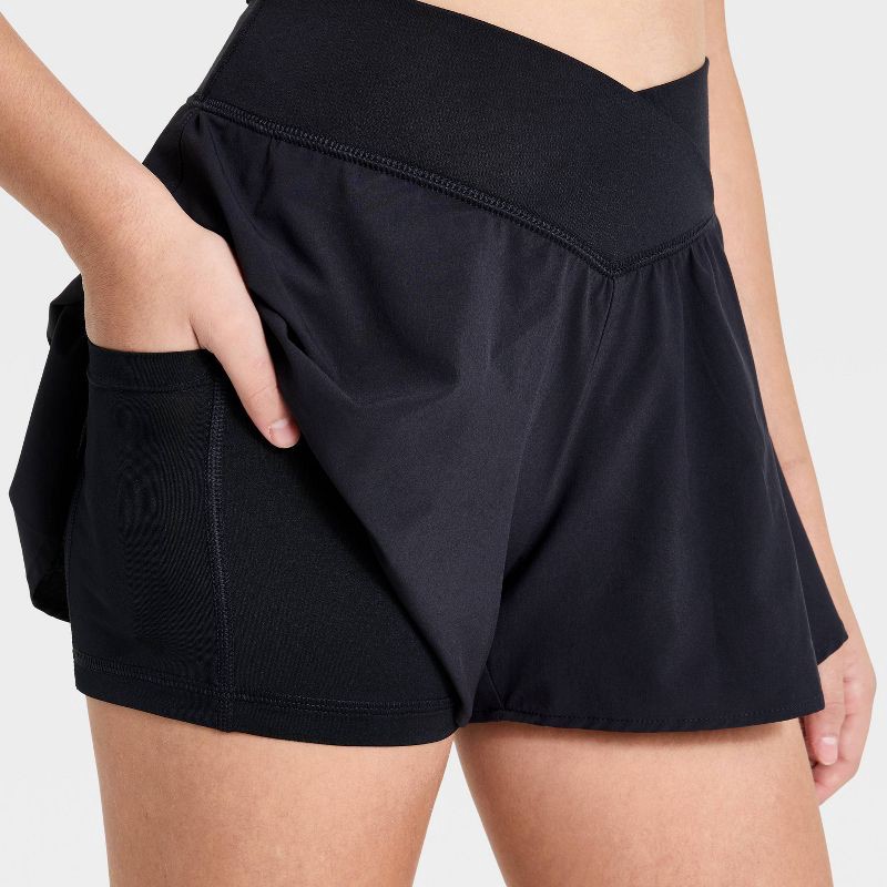 - Must-have features: moisture-wicking quick-dry fabric, cotton gusset, crossover elastic waistband, built-in shorts, mid rise, athletic fit, side pocket