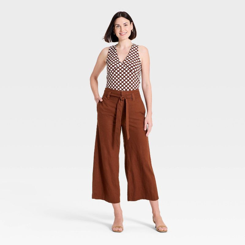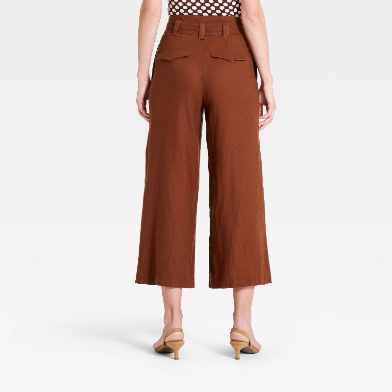 Women's High-Rise Linen Belted Pants - A New Day™ Brown 2