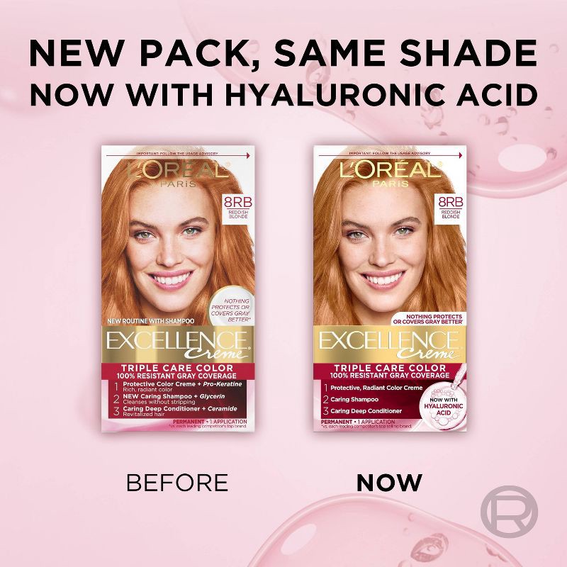 L'Oreal Paris Excellence Triple Protection Permanent Hair Color - 6.3 fl oz - 8RB Reddish Blonde - 1 kit: Aluminum-Free, Paraben-Free