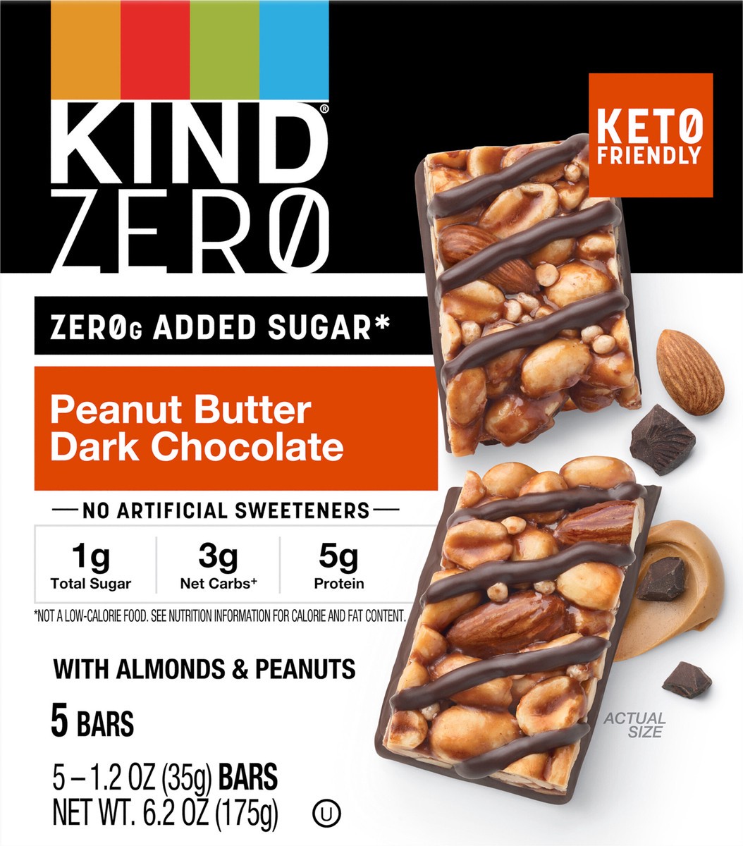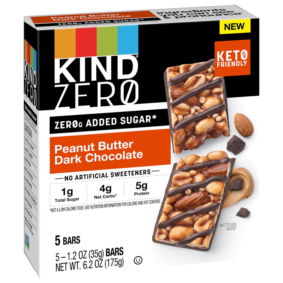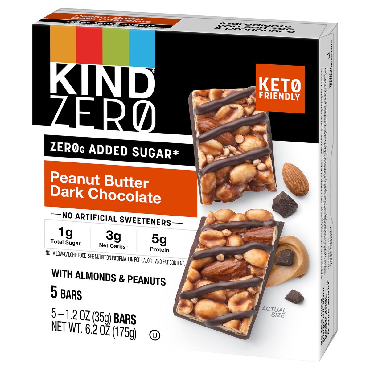 KIND ZEROg Added Sugar Bars, Keto Friendly Snacks, Peanut Butter Dark Chocolate, 6.2oz Box (5 Bars)