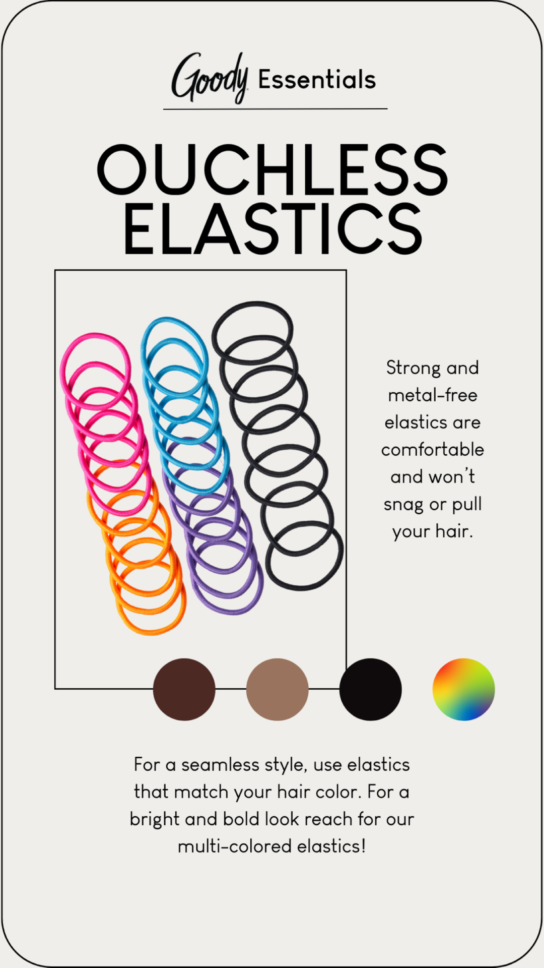 Create fun and unique hairstyles with Goody Ouchless Gentle Elastics! These cloth covered hair ties are made without metal clasps for tangle and pain-free hairstyles. Designed for fine to thin hair - …
