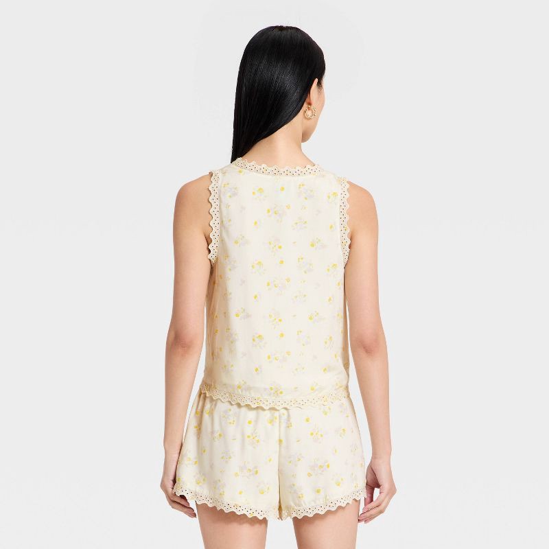 Women's Printed Lace Trim V-Neck Tank Top - A New Day™ Yellow Floral XS