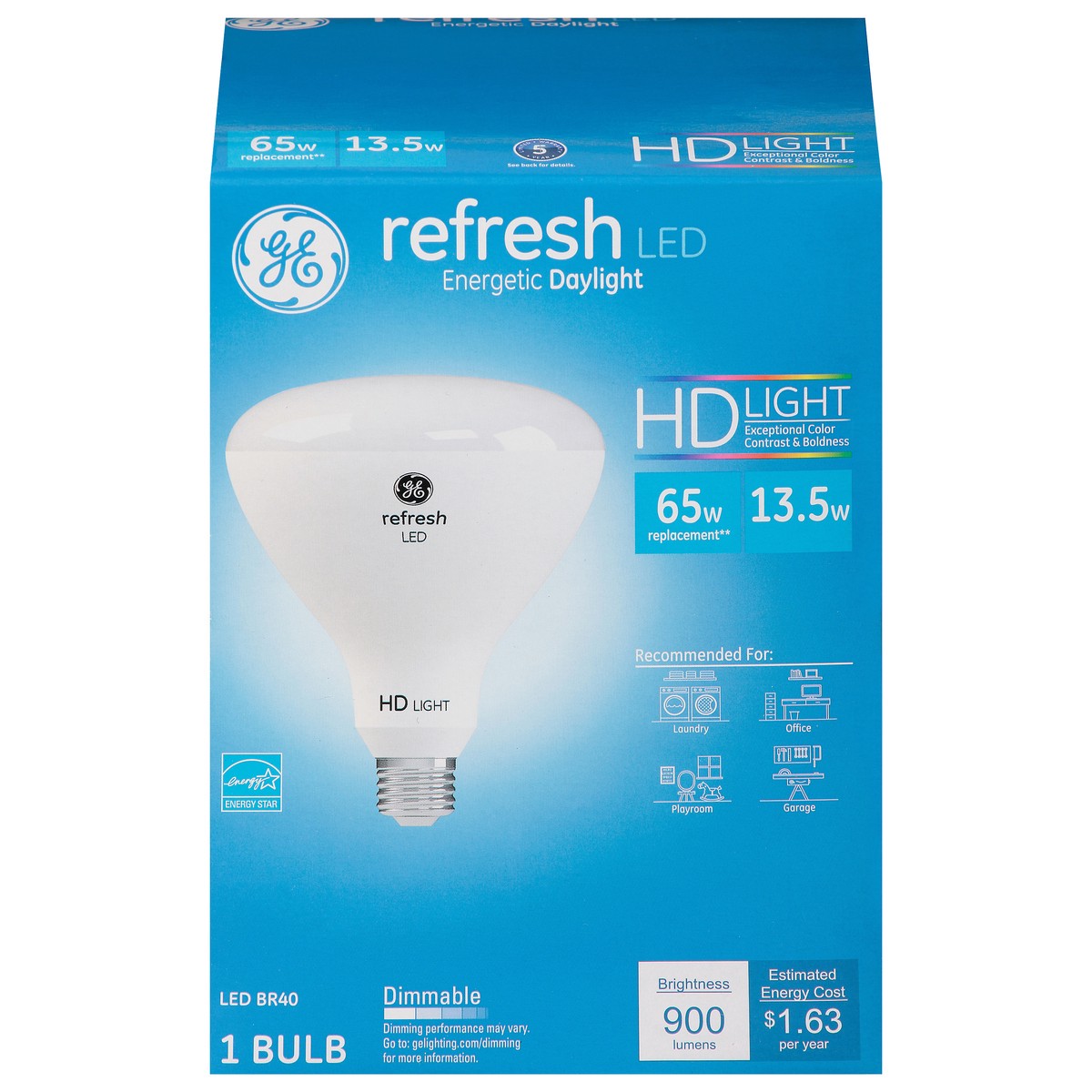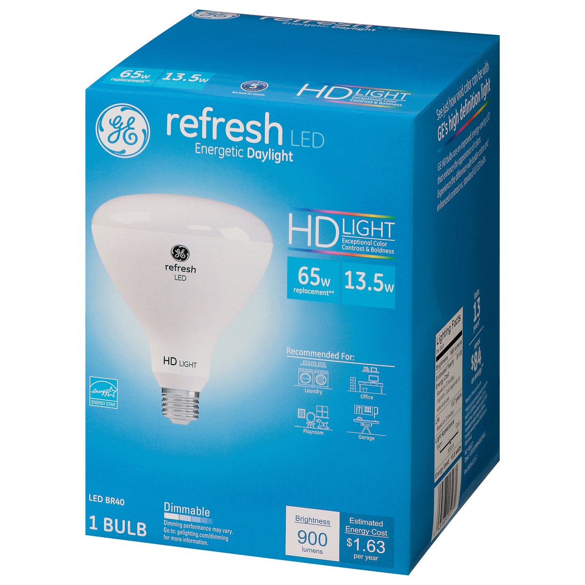 Brightness Quantity: 900 lumens. Energy Info: $1.63 based on 3 hrs/day, 11 ¢/k wh. Cost depends on rates and use. 13.5 watts. Package Info: 1. Bulb Info: LED. Is Dimmable. Has Energy Star Logo. Screw.…
