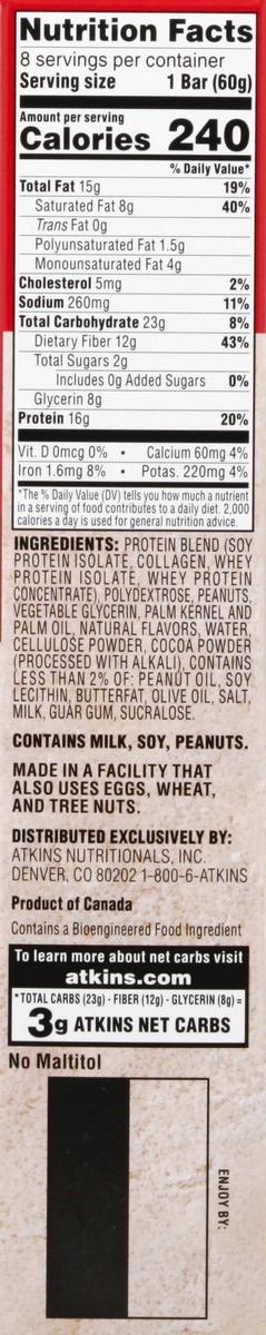 - QUALITY INGREDIENTS. Delight in the satisfying flavors and nutrients of Atkins protein bars made with quality ingredients.
