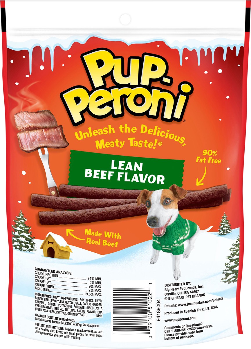 Who says less fat means less flavor? Pup-Peroni Lean Beef Flavor dog snacks are 90% fat free, but still have that meaty taste and mouthwatering aroma dogs love. They''re made with real beef, so your d…