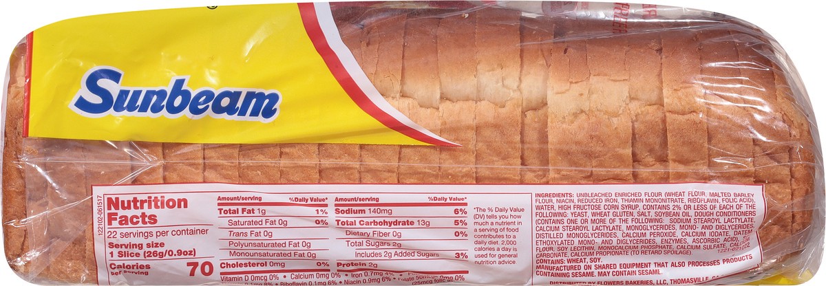 Reach for classic Sunbeam White Bread and know you'll have quality. Each enriched loaf of bread is soft, scrumptious and perfect for sandwiches. This loaf of white bread is convenient for any sized fa…
