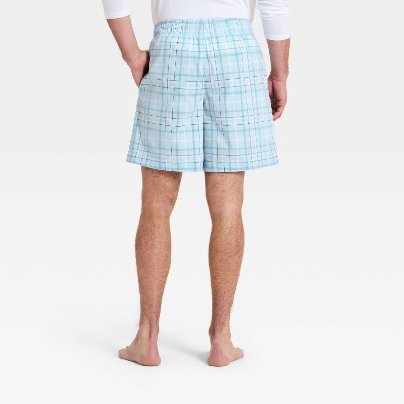 Men's Poplin Woven Pajama Shorts - Goodfellow & Co™ Light Blue Plaid L