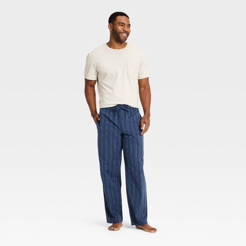 Men's Poplin Woven Pajama Pants - Goodfellow & Co™ Navy Blue Stripe XL