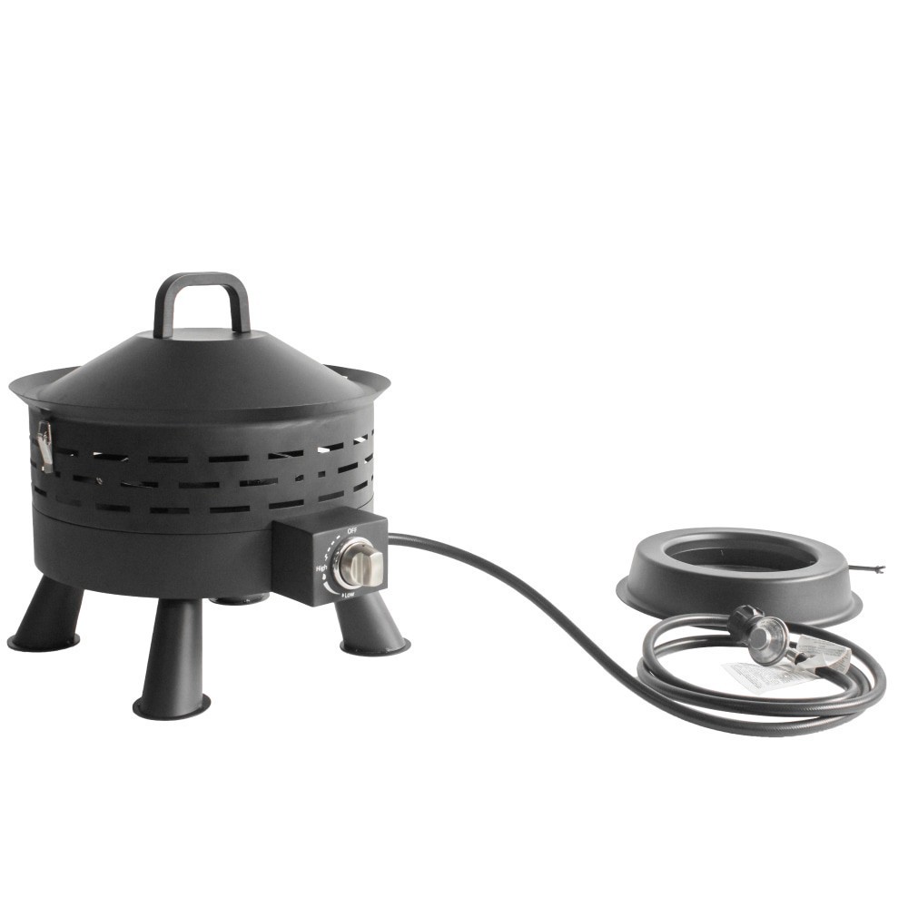 17.3-inch portable gas fire pit Locking lid Heat output of 50,000 BTU Outside gas tank ring holds full size (20 lb) propane tank (sold separately) Piezoelectric igniter for easy start Includes pumice …