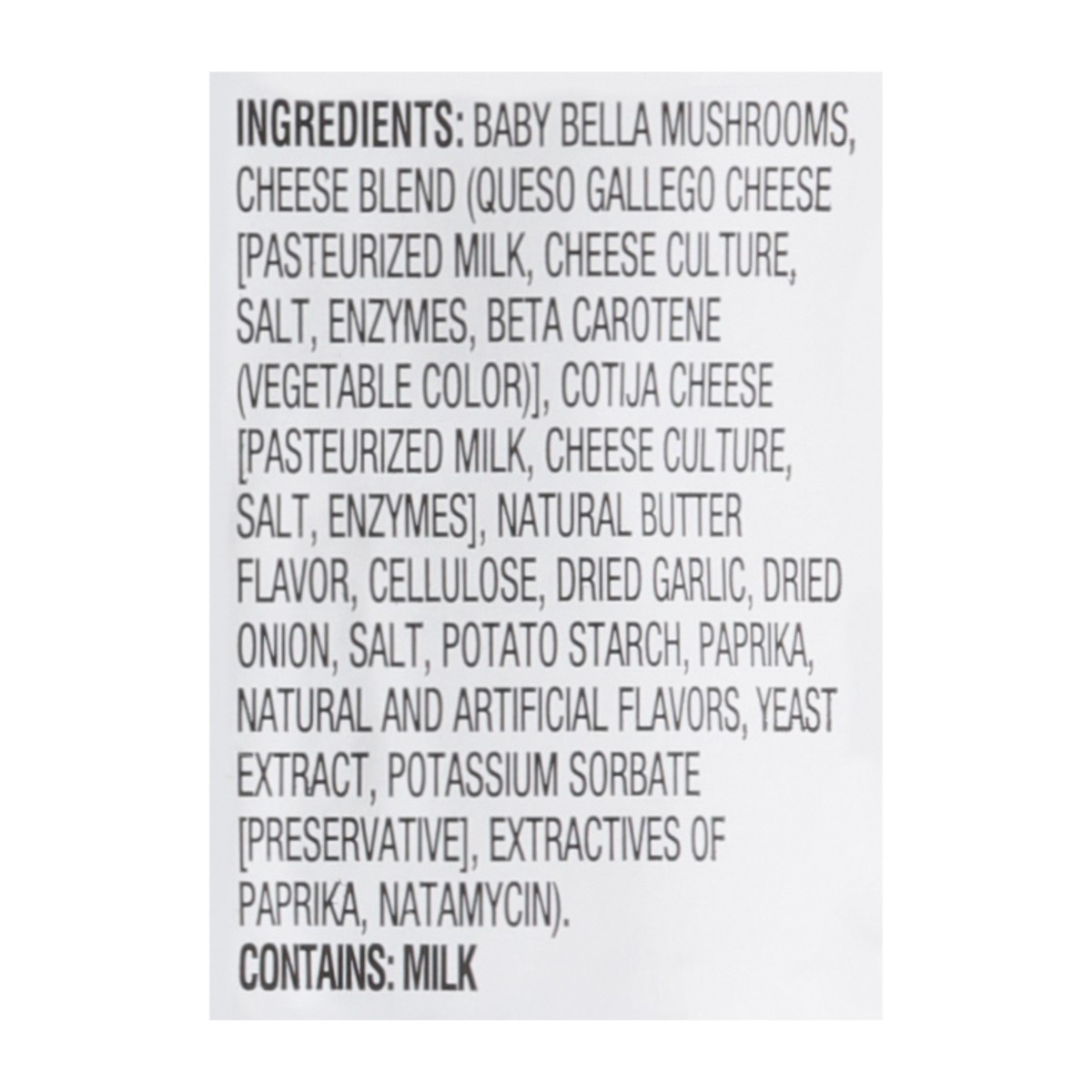 Baby Bella Mushrooms, Cheese Blend (Queso Gallego Cheese [Pasteurized Milk, Cheese Culture, Salt, Enzymes, Beta Carotene (Vegetable Color)], Cotija Cheese [Pasteurized Milk, Cheese Culture, Salt, Enzy…