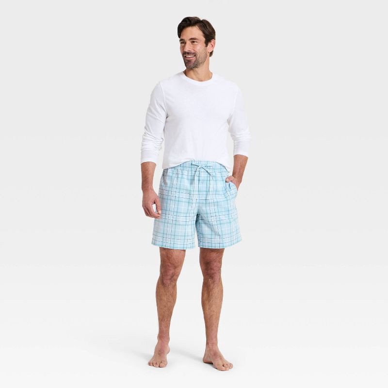 Men's Poplin Woven Pajama Shorts - Goodfellow & Co™ Light Blue Plaid XL