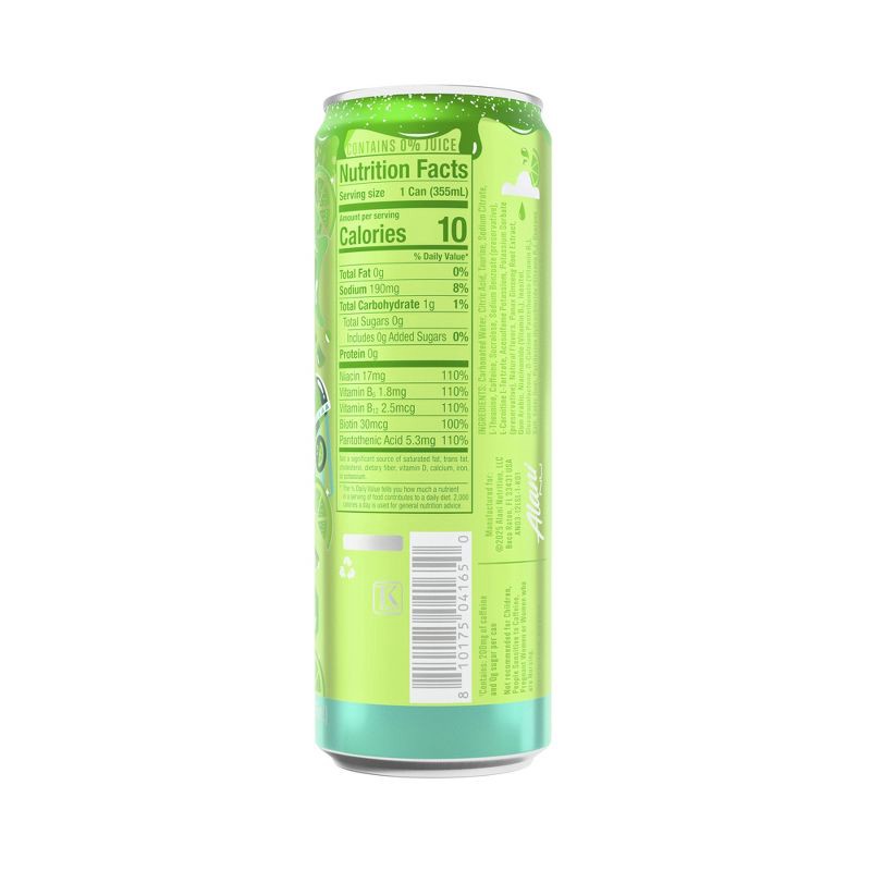 Carbonated Water, Citric Acid, Taurine, Sodium Citrate, L-Theanine, Caffeine, Sucralose, Sodium Benzoate (Preservative), L-Carnitine L-Tartrate, Acesulfame Potassium, Potassium Sorbate (Preservative),…