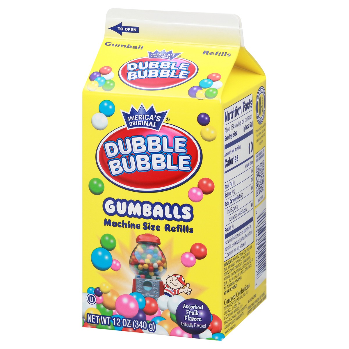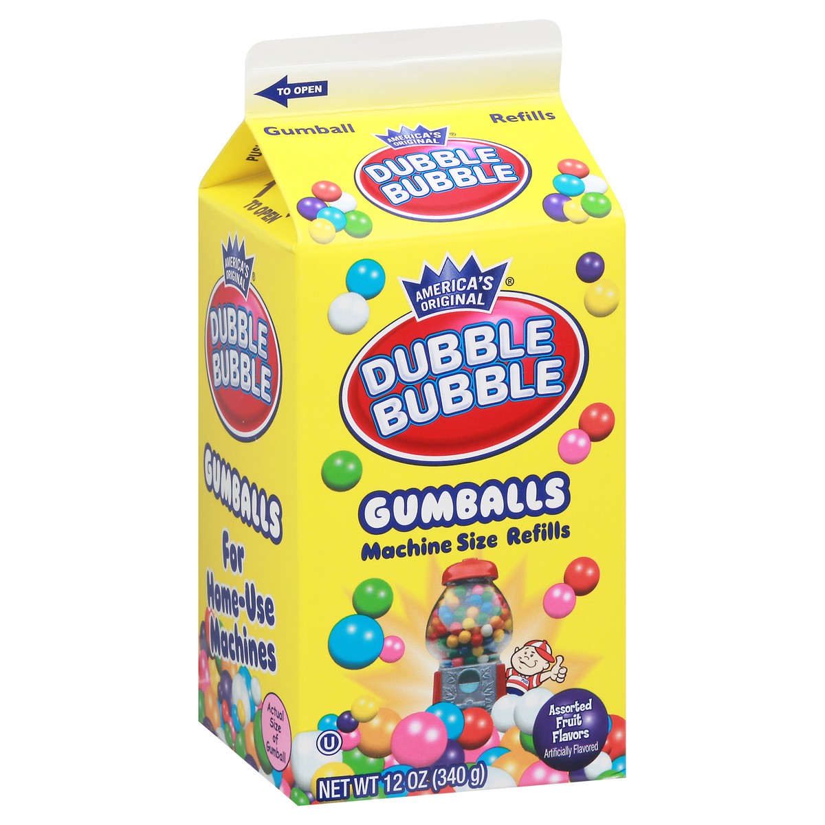 Dubble Bubble Machine Size Refills Assorted Fruit Flavors Gumballs - 12 oz Carton