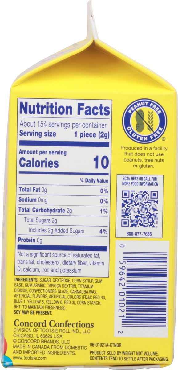 Sugar, Dextrose, Corn Syrup, Gum Base, Gum Arabic, Tapioca Dextrin, Titanium Dioxide, Confectioners Glaze, Carnauba Wax, Artificial Flavors, Artificial Colors (FD&C Red 40, Blue 1, Yellow 5, Yellow 6,…
