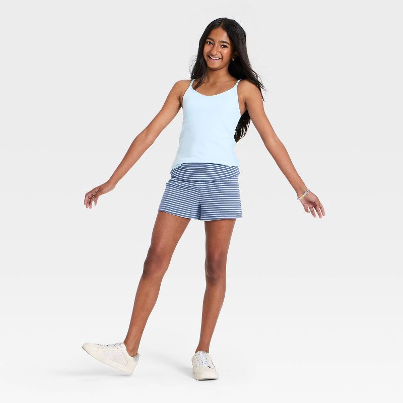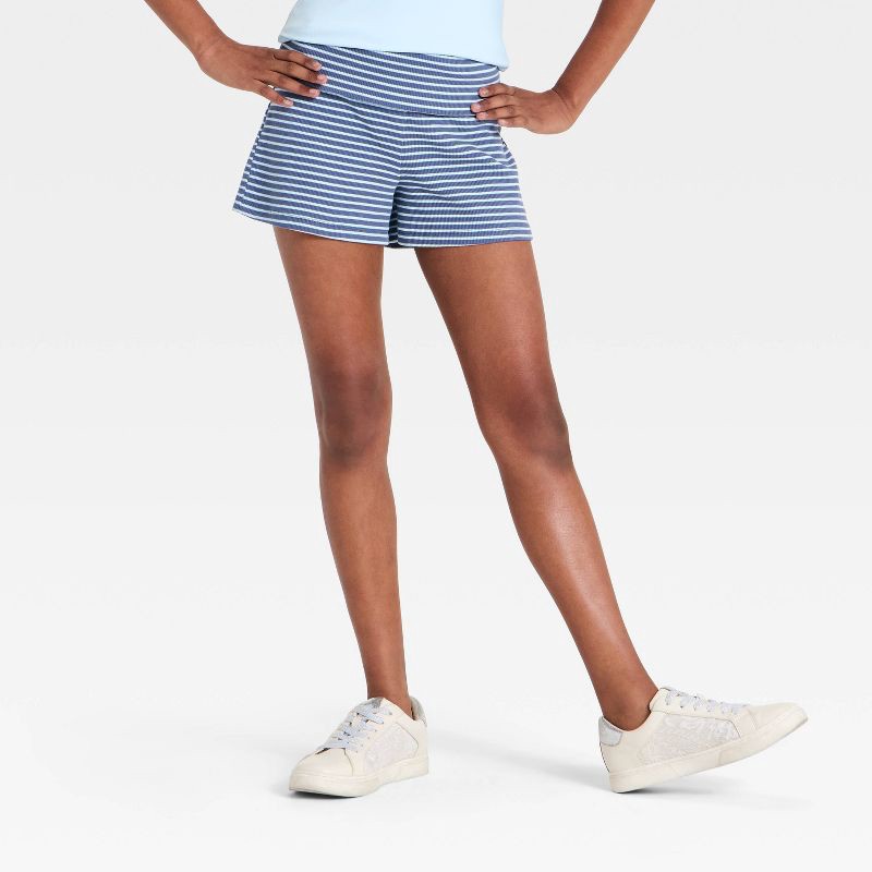 Girls' Striped Ribbed Foldover Waist Pull-On Shorts - art class™ Blue L