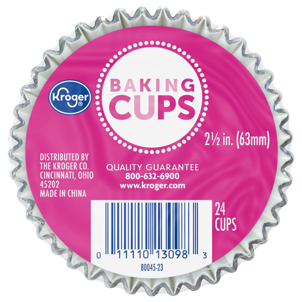 Kroger® 2.5 Inch Foil Baking Cups make your baking easy and fun! At 2-1/2 inches, they ensure your treats look their best. Ideal for cupcakes, muffins, and more, your creations will pop right out. Mak…