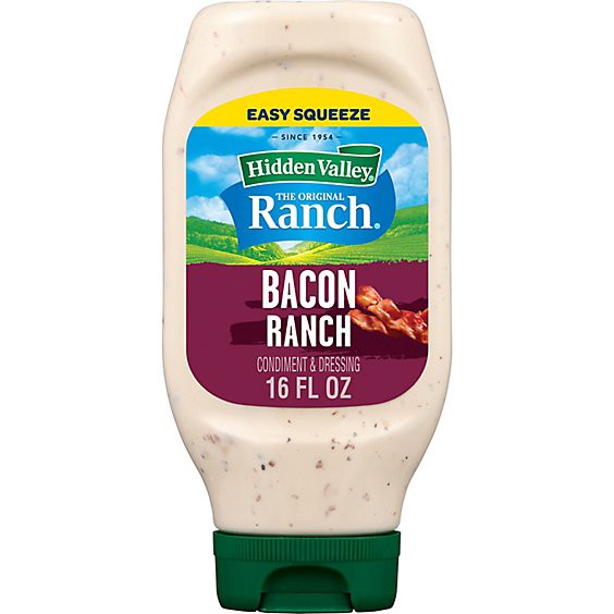 Give every meal more delicious flavor with Hidden Valley Bacon Ranch Dressing. Made with real bacon, maple syrup and Hidden Valley''s secret blend of herbs and spices, this thick and creamy dressing i…