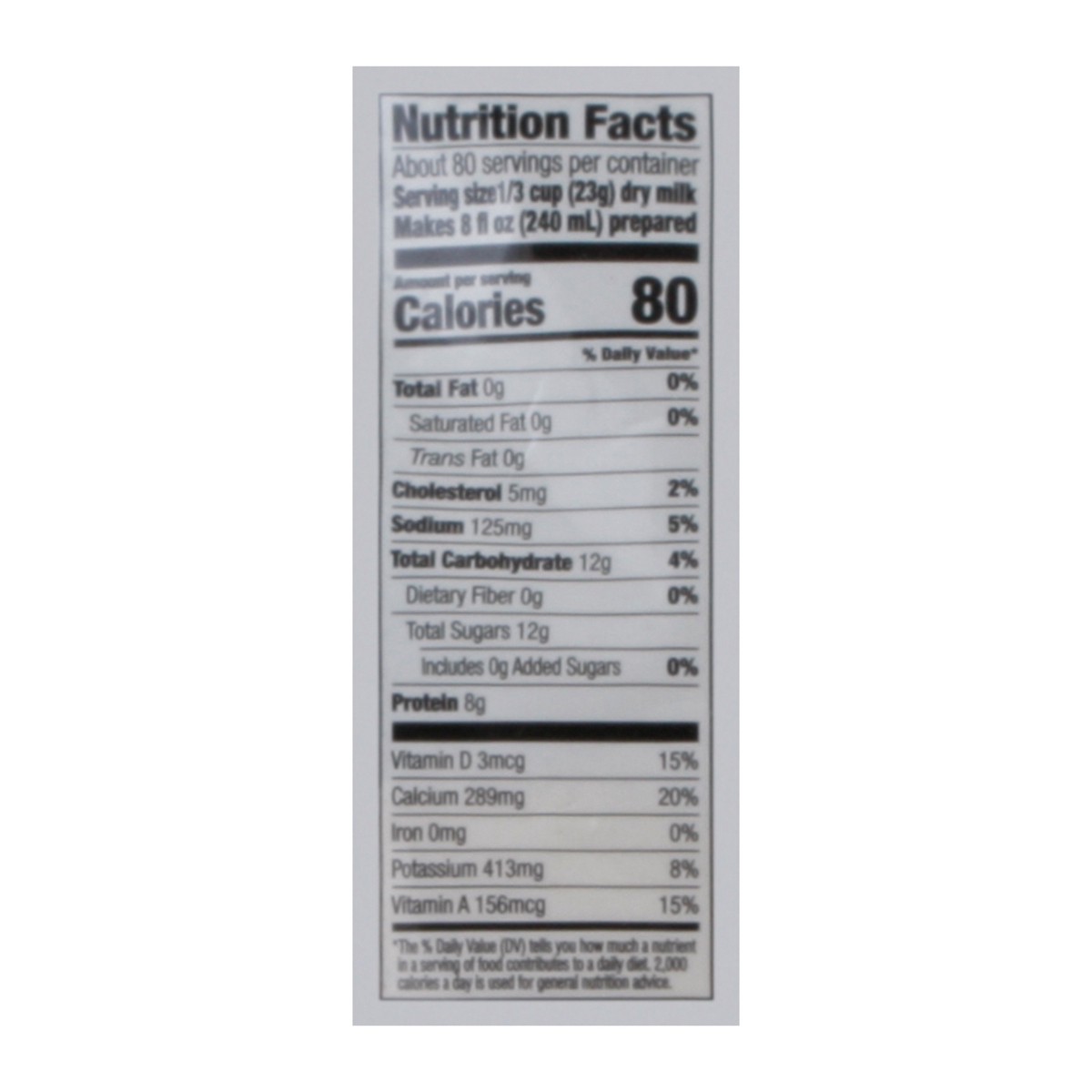 Nonfat Dry Milk, Vitamin A Palmitate, Vitamin D3.