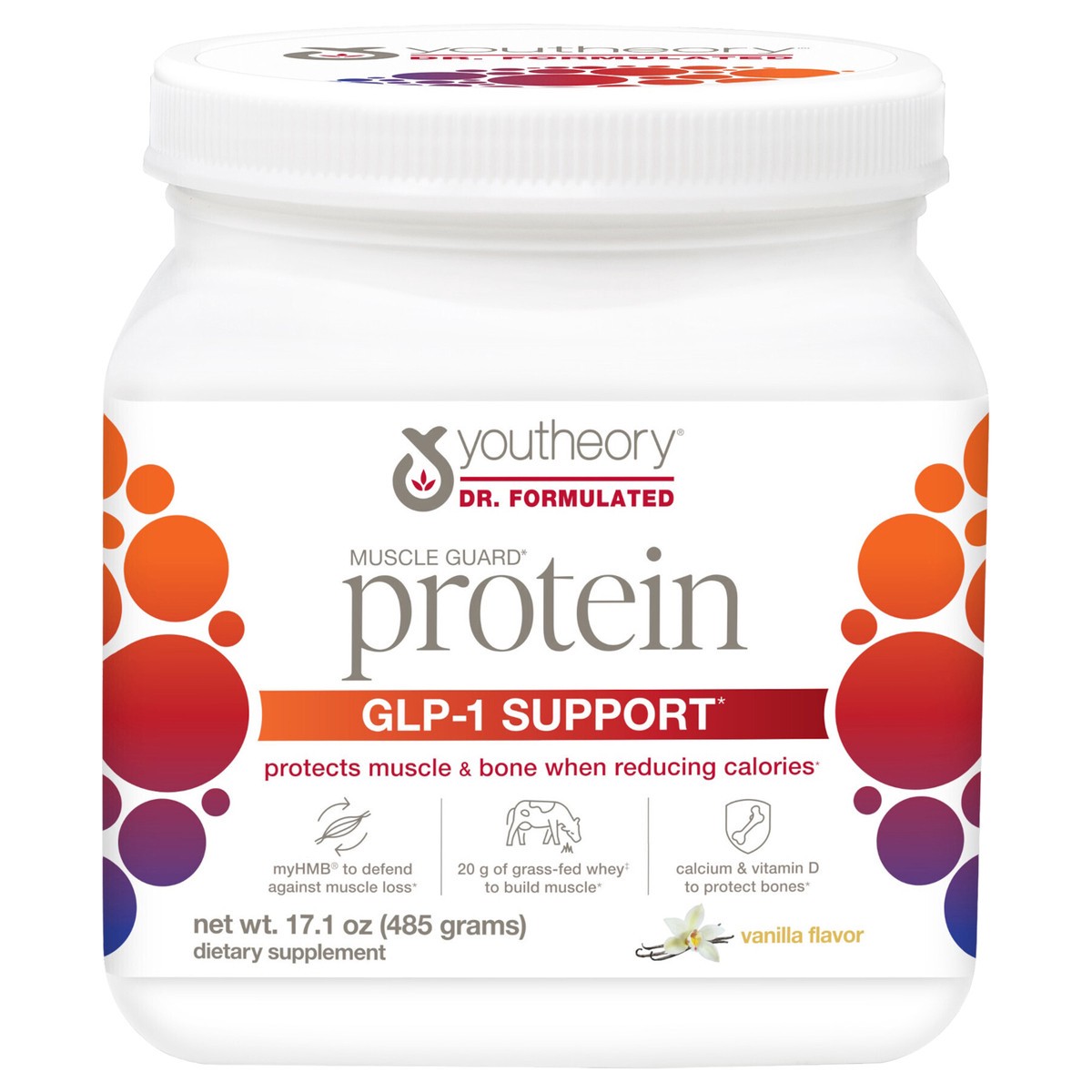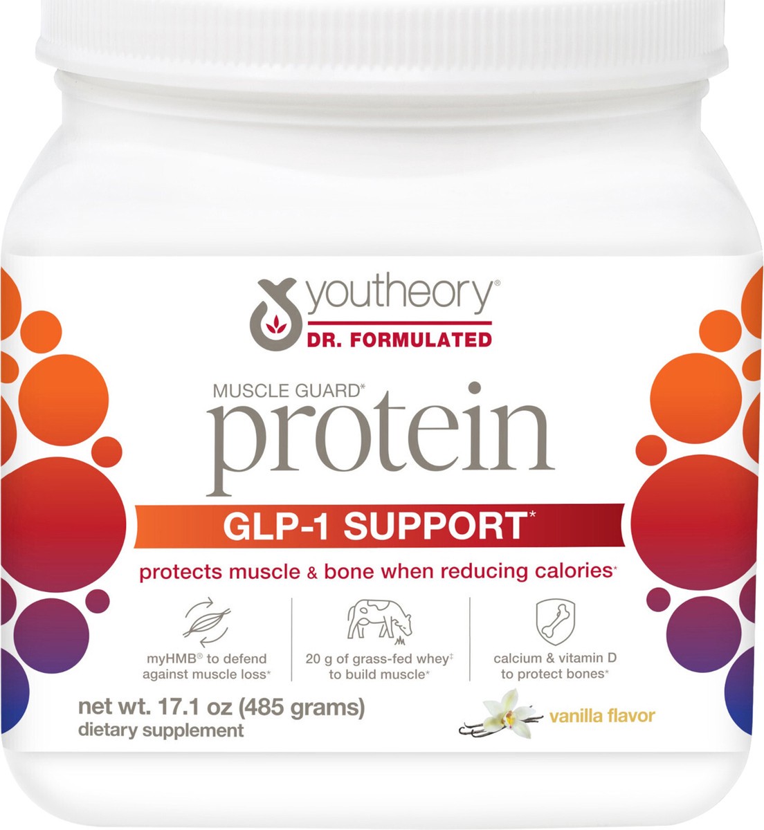 youtheory GLP-1 Support Muscle Guard Vanilla Flavor Protein 17.1 oz