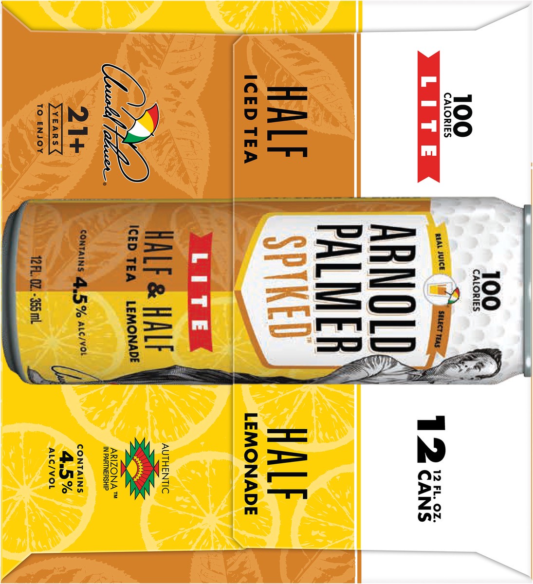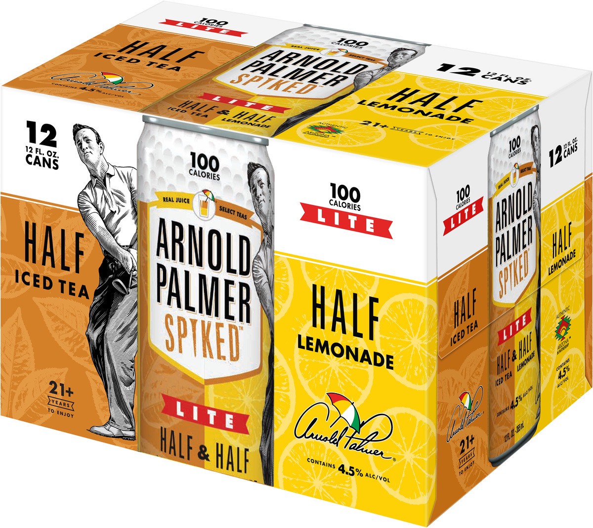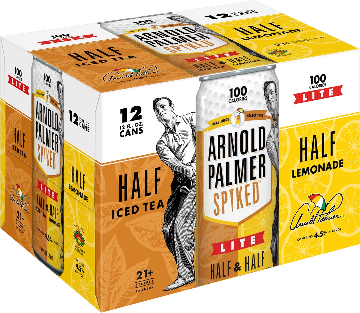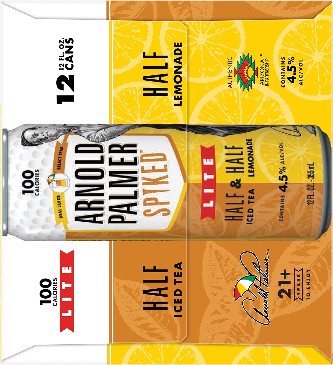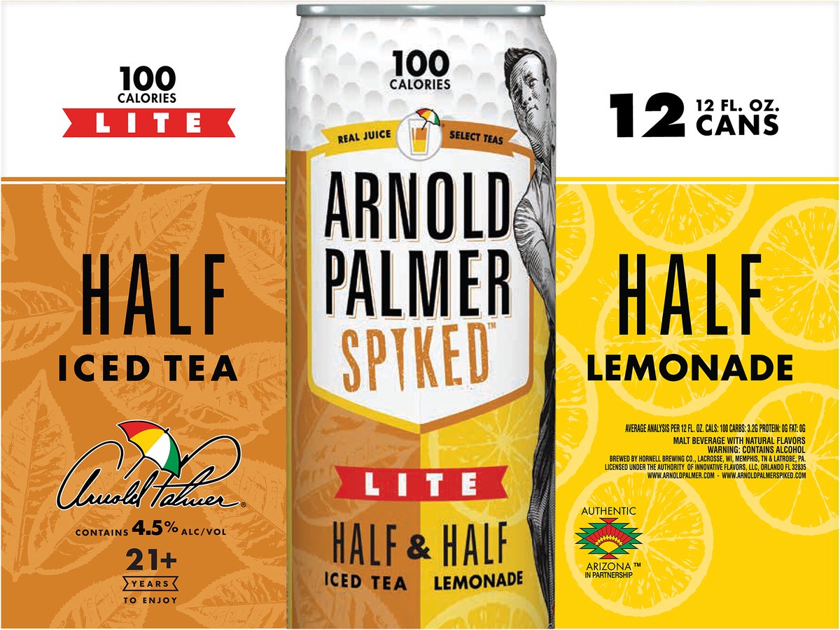 - You''ll get twelve 12-ounce beer cans of Arnold Palmer Spiked Half & Half Lite Beer