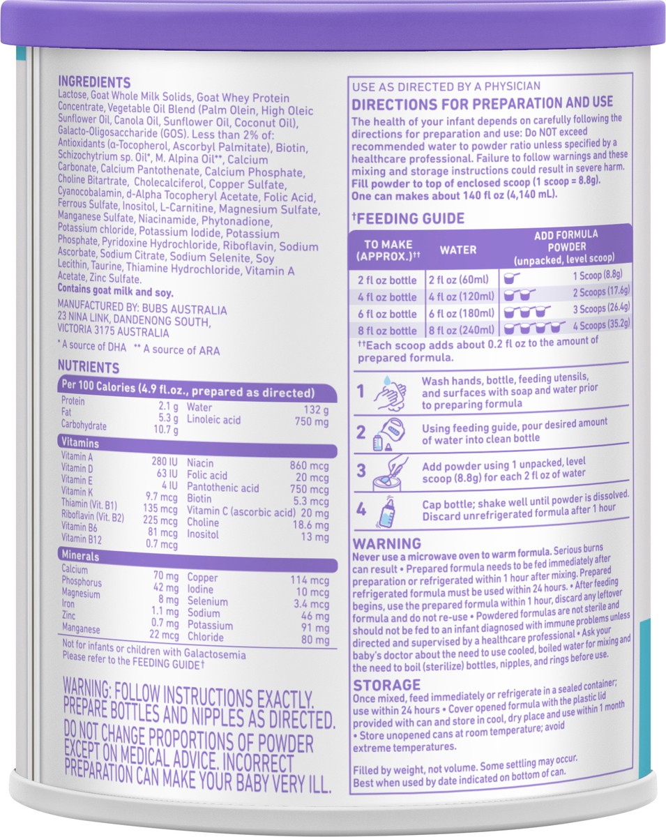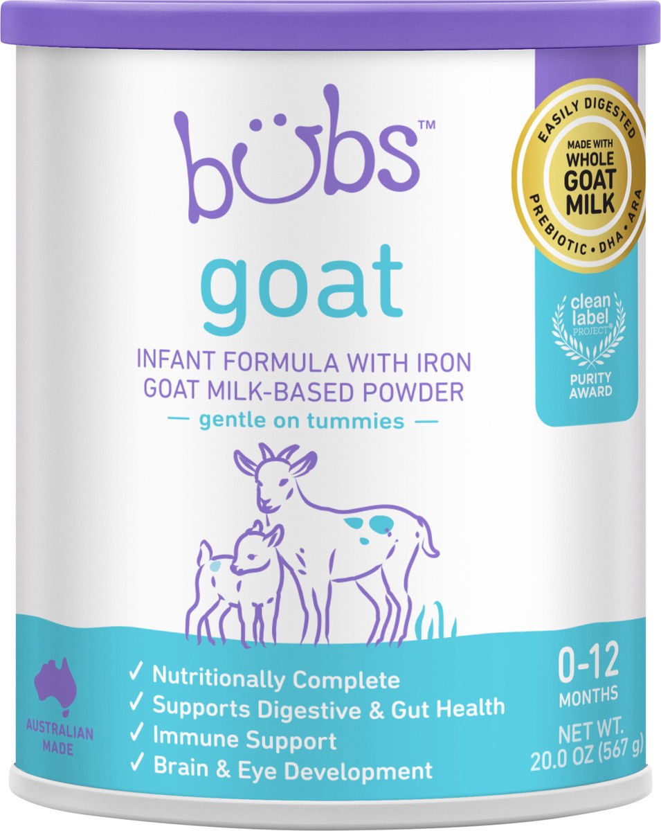 Gentle on tummies. Bubs Goat Milk Infant Formula is the first and only clean label goat milk formula available today. It's made with whole goat milk which has A2 protein, a smaller and softer protein …