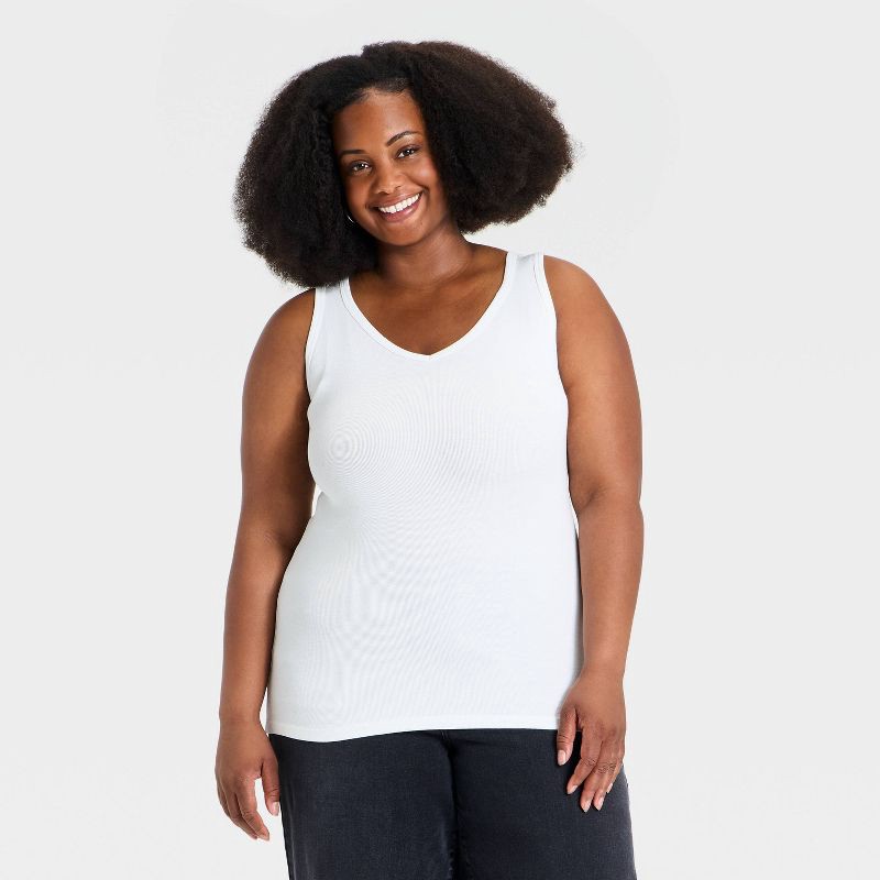 Women's Slim Fit Ribbed Tank Top - Ava & Viv™ White 1X