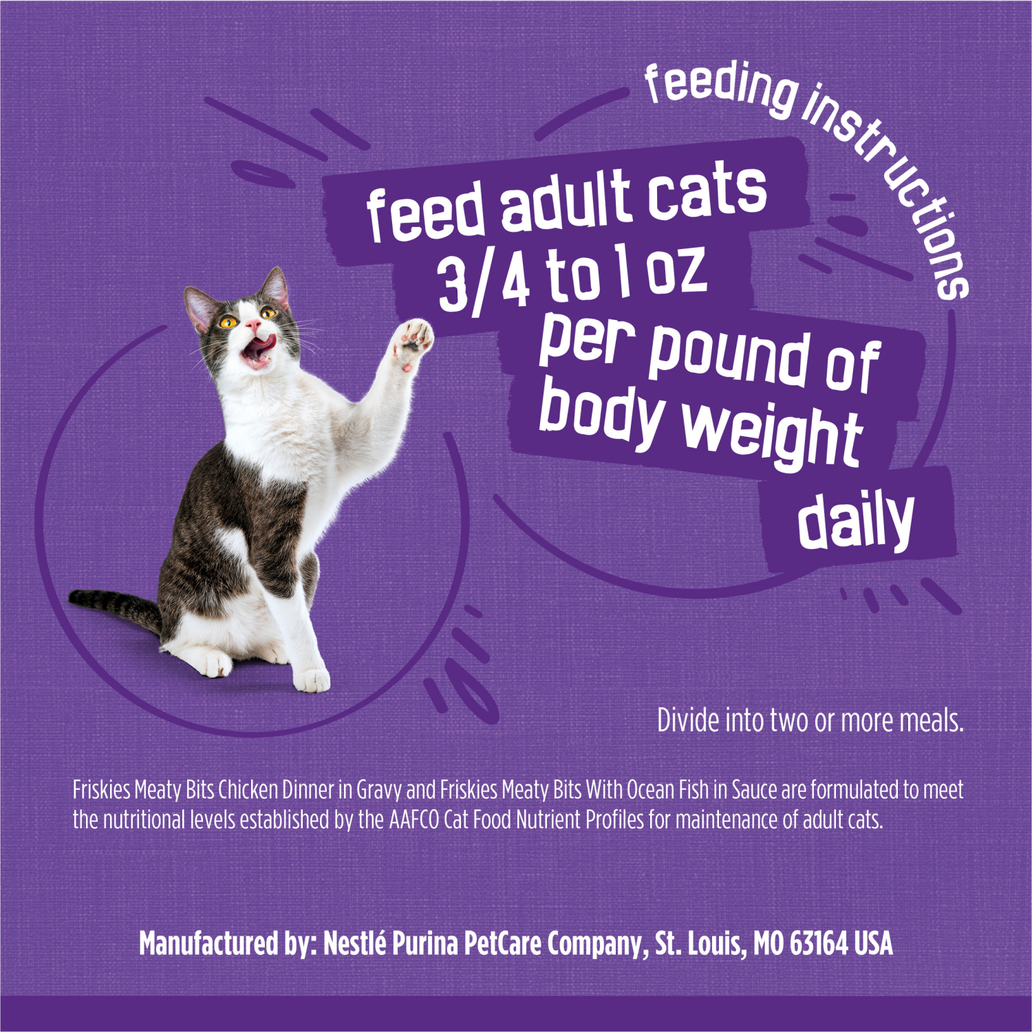 Quench your curious cat's cravings for savory goodness and variety when you serve Purina Friskies Meaty Bits With Ocean Fish and Chicken Dinner in Gravy cat food Variety Pack. Real high-quality proteiā¦