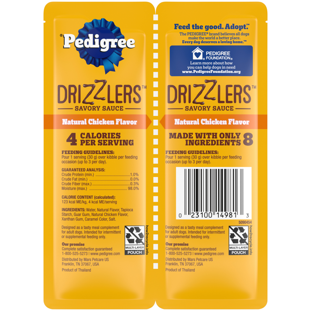 Pedigree Drizzlers Savory Sauce Natural Chicken Flavor Meal Complement for Dogs 2 - 30 g Packs