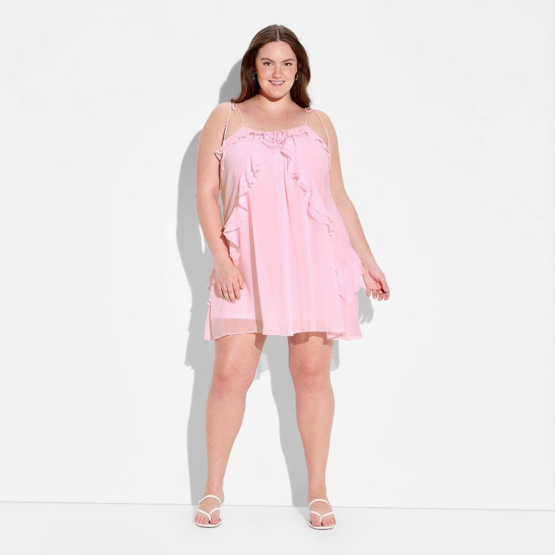 Women's Boho Ruffle Mini Dress - Wild Fable™ Light Pink XXL