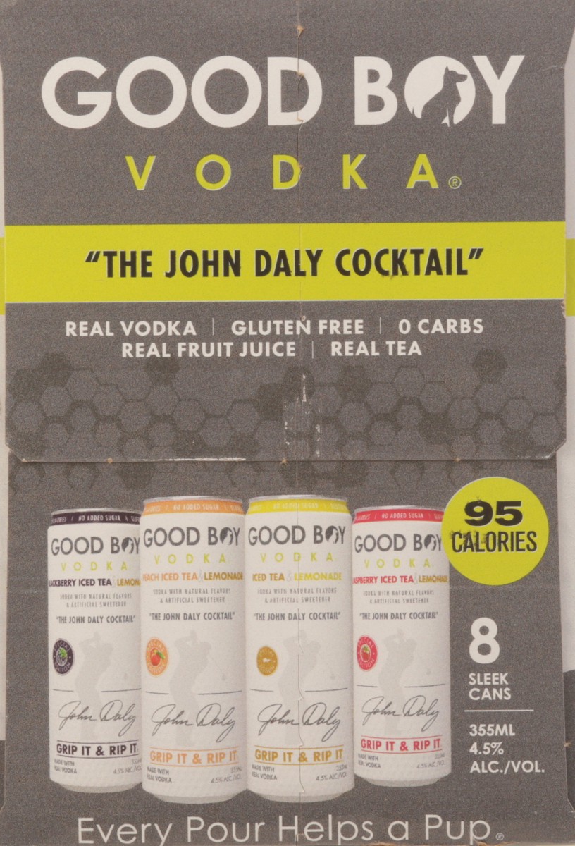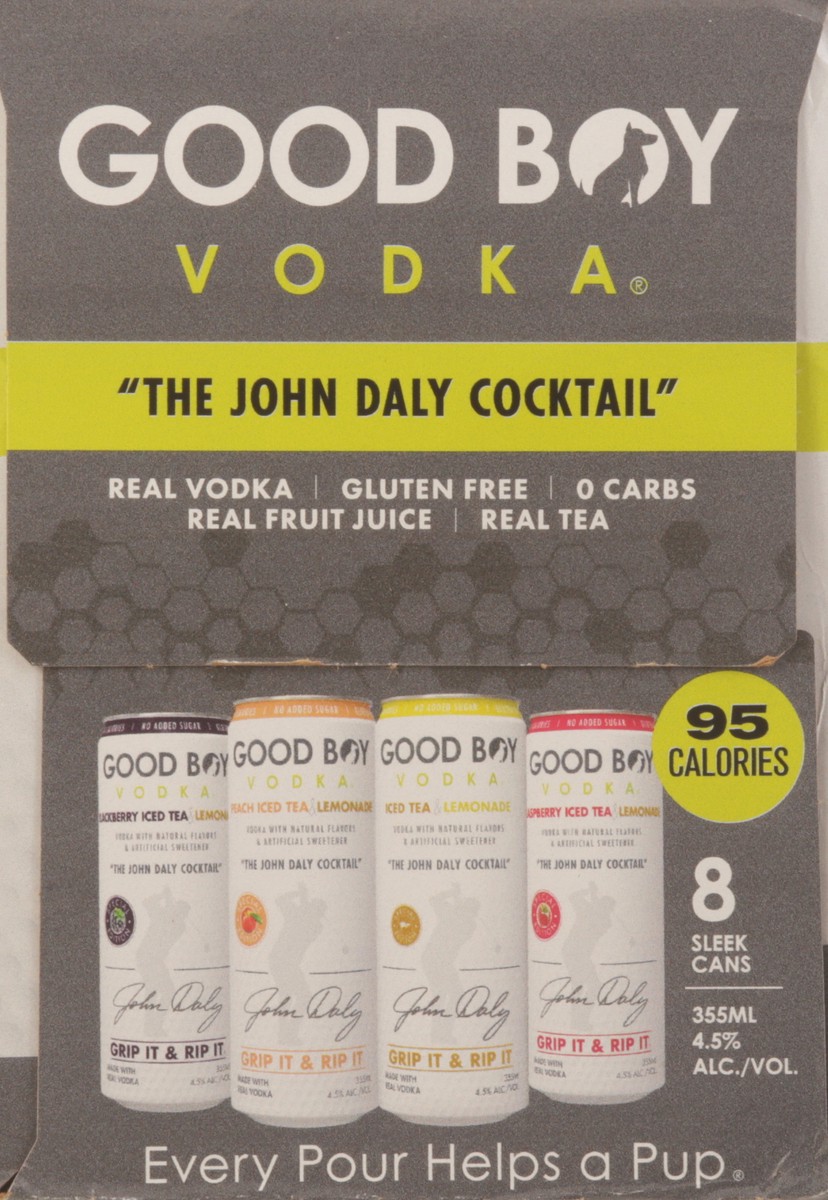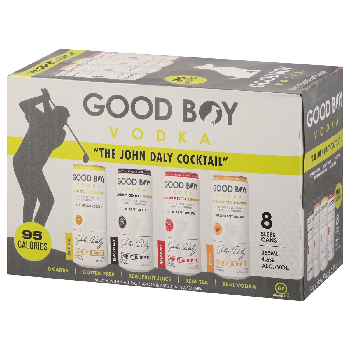 United States - The John Daly cocktail is an exclusive and delicious drink handcrafted by Good Boy vodka. It is an iced tea, lemonade, and vodka. The variety pack contains Blackberry, Raspberry, and P…