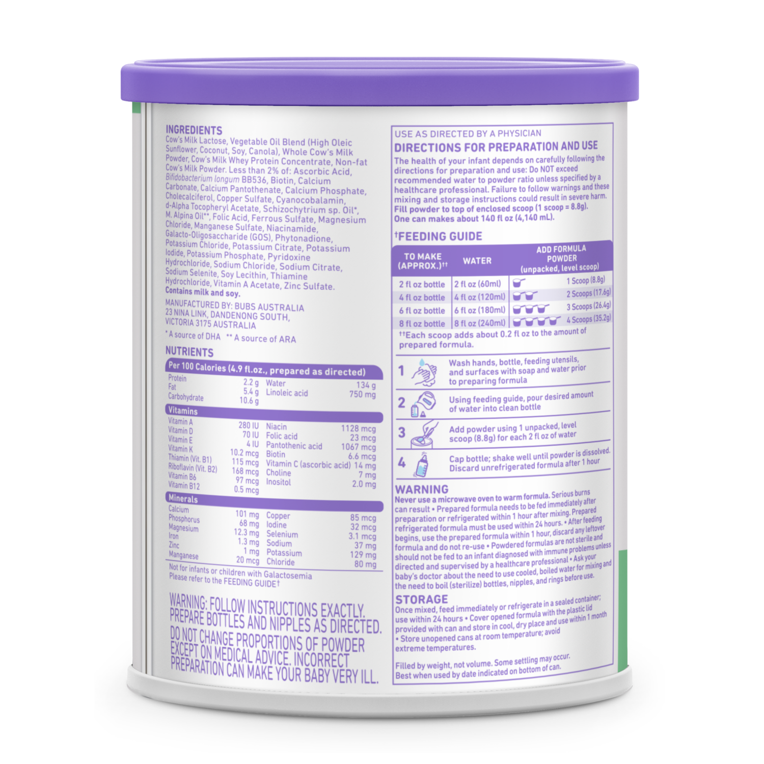 Bubs Grass Fed Infant Formula is exclusively formulated for tiny tummies ages 0 to 12 months. Made with milk from grass fed cows, nutritionally balanced, supporting your toddlers growth and developmen…