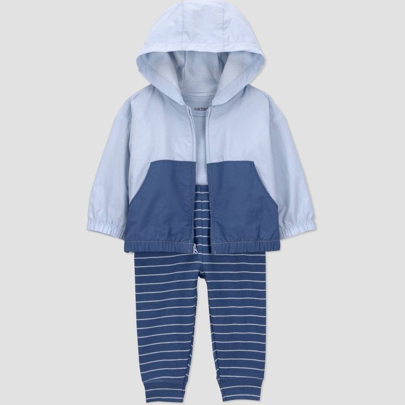 Baby boy is cozy and stylish in this look from Carter's Just One You. This 3-piece set has everything your handsome boy needs for changing seasons – a hooded windbreaker jacket with colorblock detail …