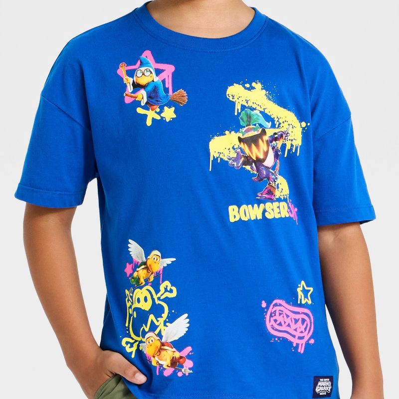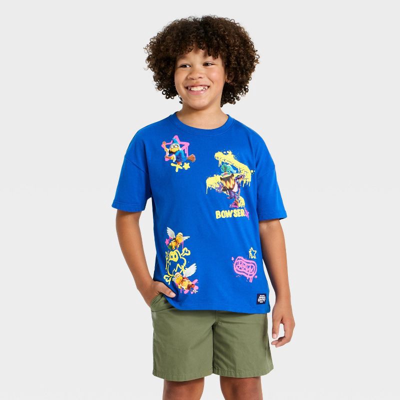 Bring mischievous fun to your child's casualwear with this Nintendo Super Mario Brothers Bowser Short-Sleeve Oversized Graphic T-Shirt. This bright blue T-shirt features colorful graffiti-style Bowser…