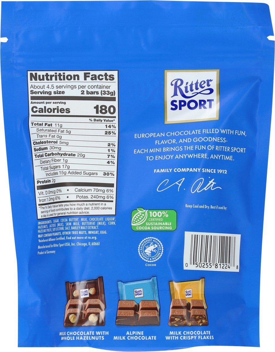 Ritter Sport Premium European Minis Milk Chocolates 5.29 oz
