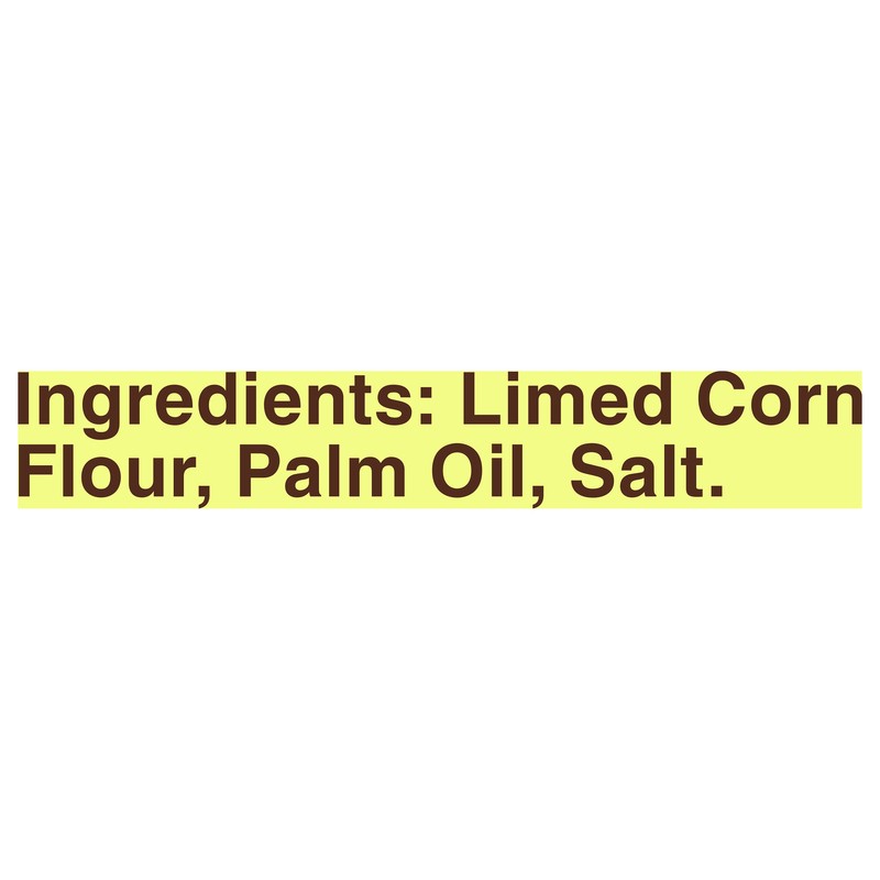 Limed Corn Flour, Palm Oil, Salt.