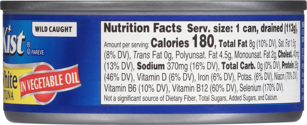 White Tuna, Soybean Oil, Water, Vegetable Broth, Salt, Pyrophosphate.