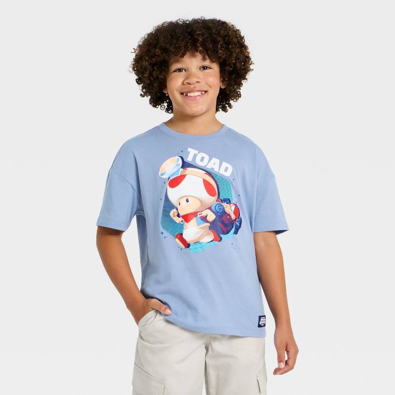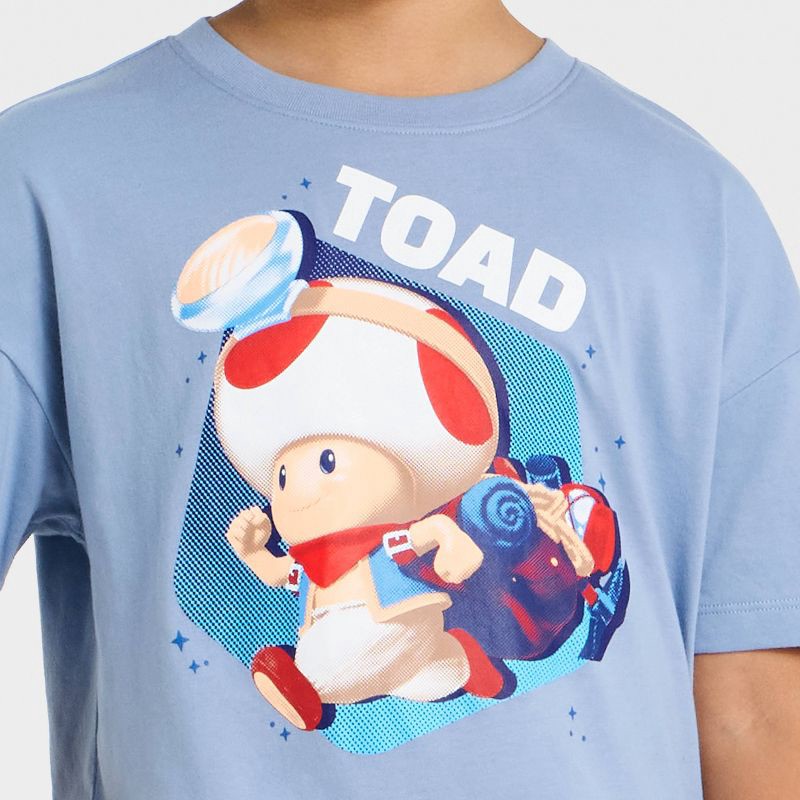 Boys' Nintendo Super Mario Brothers Short Sleeve Toad Let's Go Oversized Graphic T-Shirt - Light Blue XS