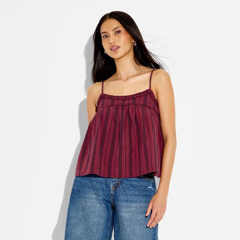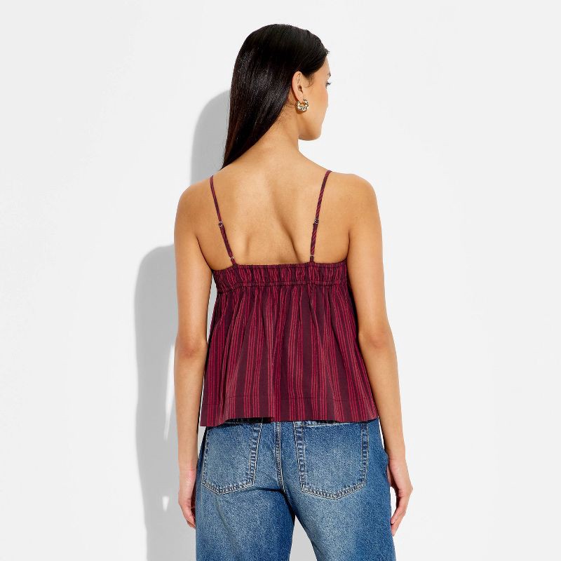 Women's Trapeze Ruffle Babydoll Cami - Wild Fable™ Dark Red Striped M
