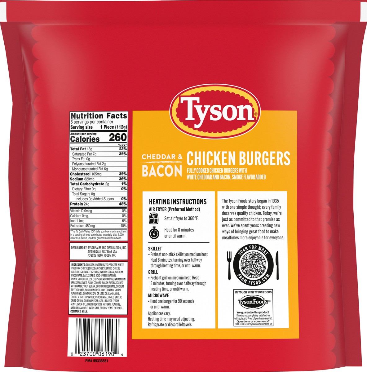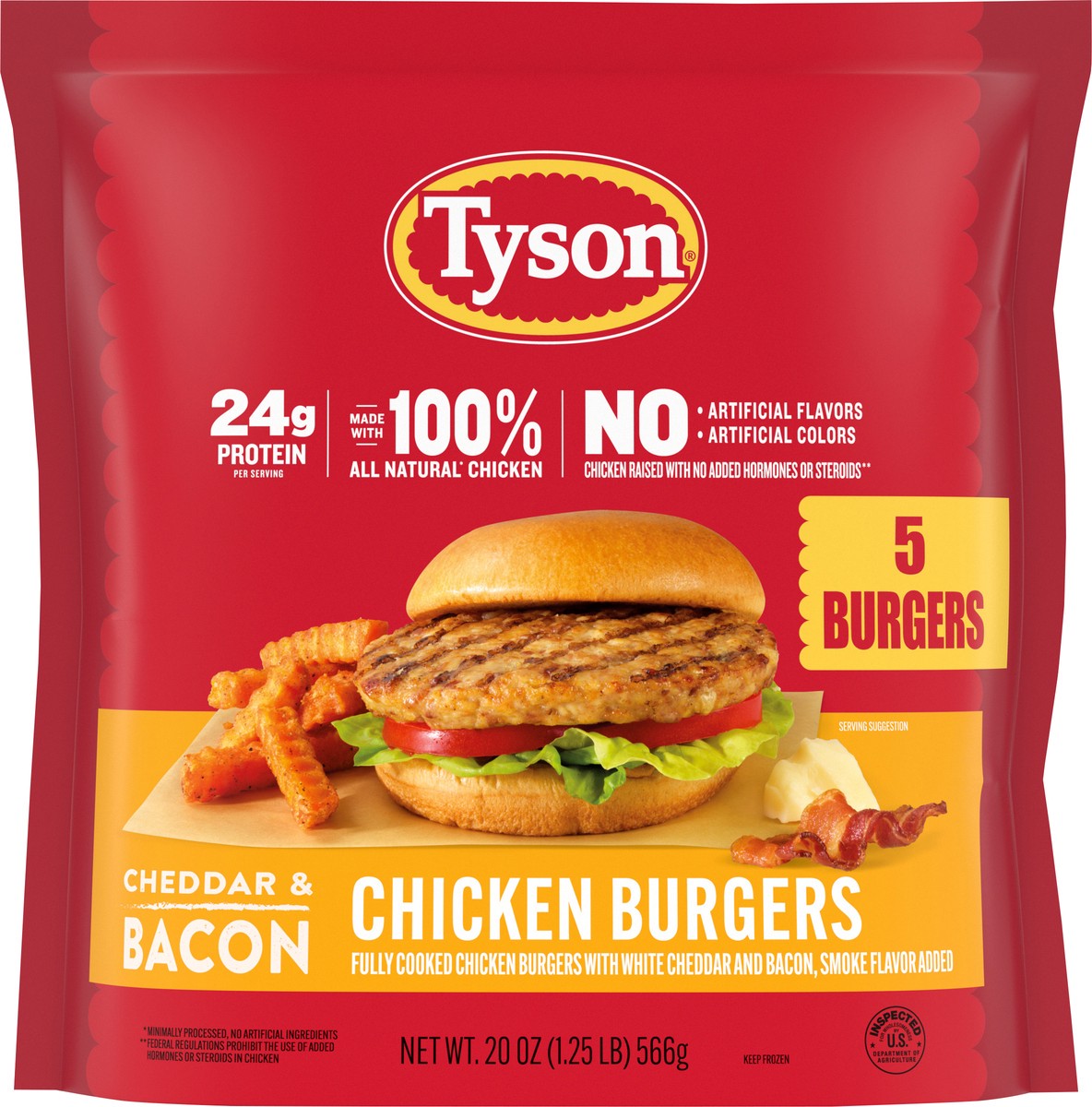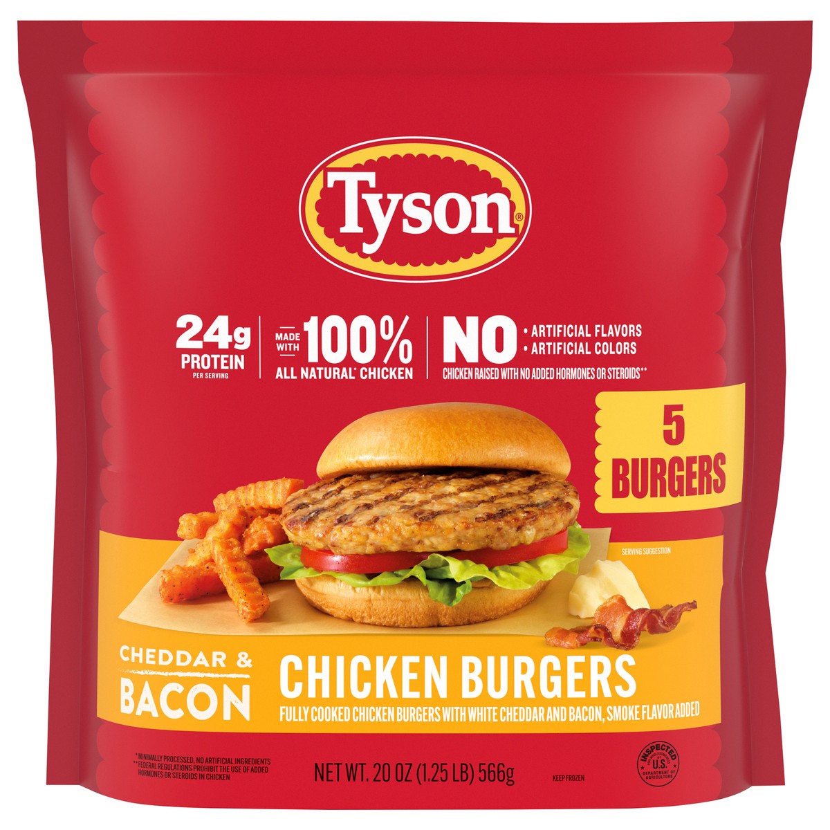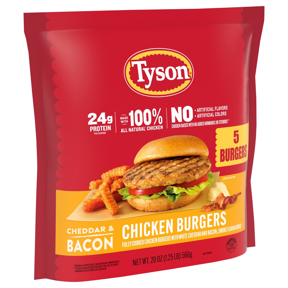 Indulge in the ultimate flavor experience with our Tyson Cheddar & Bacon Chicken Burgers. Crafted for those who crave a deliciously savory bite, these burgers are made with 100% All Natural* Chicken, …