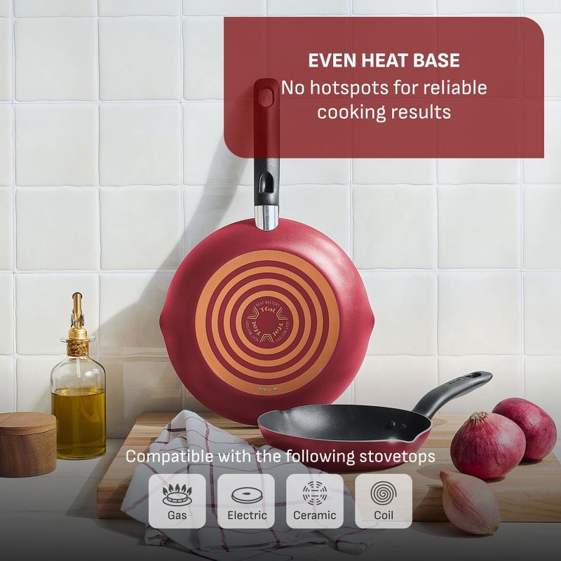 T-Fal 20pc Simply Cook Nonstick Cookware Set Red: Skillet & Pan Set, Glass Lids, Dishwasher & Oven Safe, Ergonomic Handles