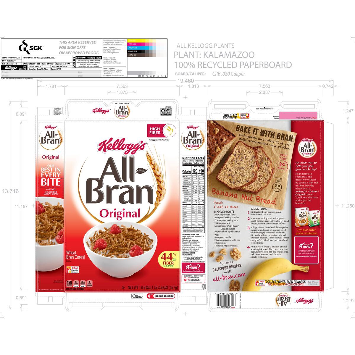 Greet your morning with Kellogg's All-Bran, a delicious, low-fat breakfast cereal made with simple, wholesome ingredients. A healthy, family-favorite cereal, Kellogg's All-Bran Original is made to enj…