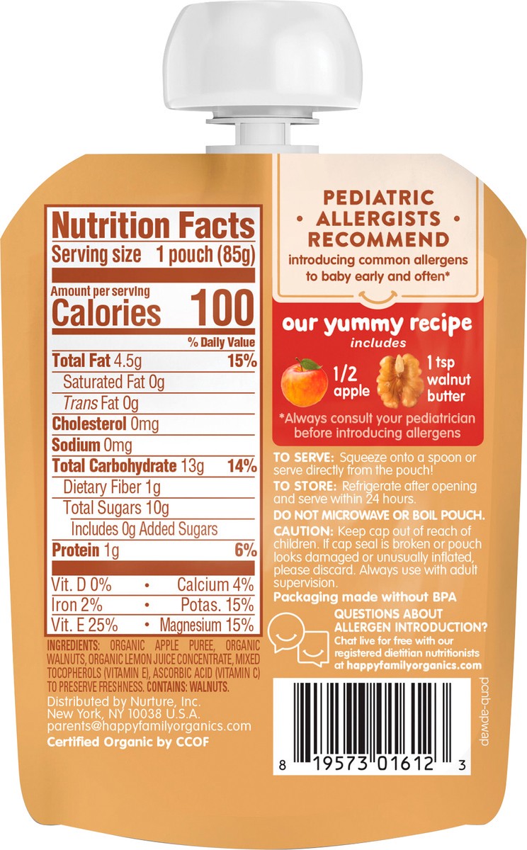 Happy Baby Organics Nutty Blends Organic Apples with 1 tsp Walnut Butter 3oz Pouch