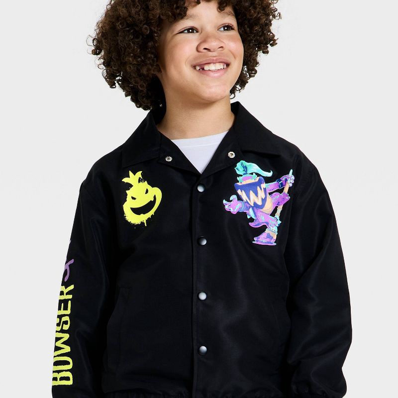 Your kid can flaunt their gamer fandom with this Nintendo Super Mario Brothers Bowser Jacket. Made of 100% polyester for cozy comfort, this long-sleeve jacket features a Nabbit graphic on the front an…