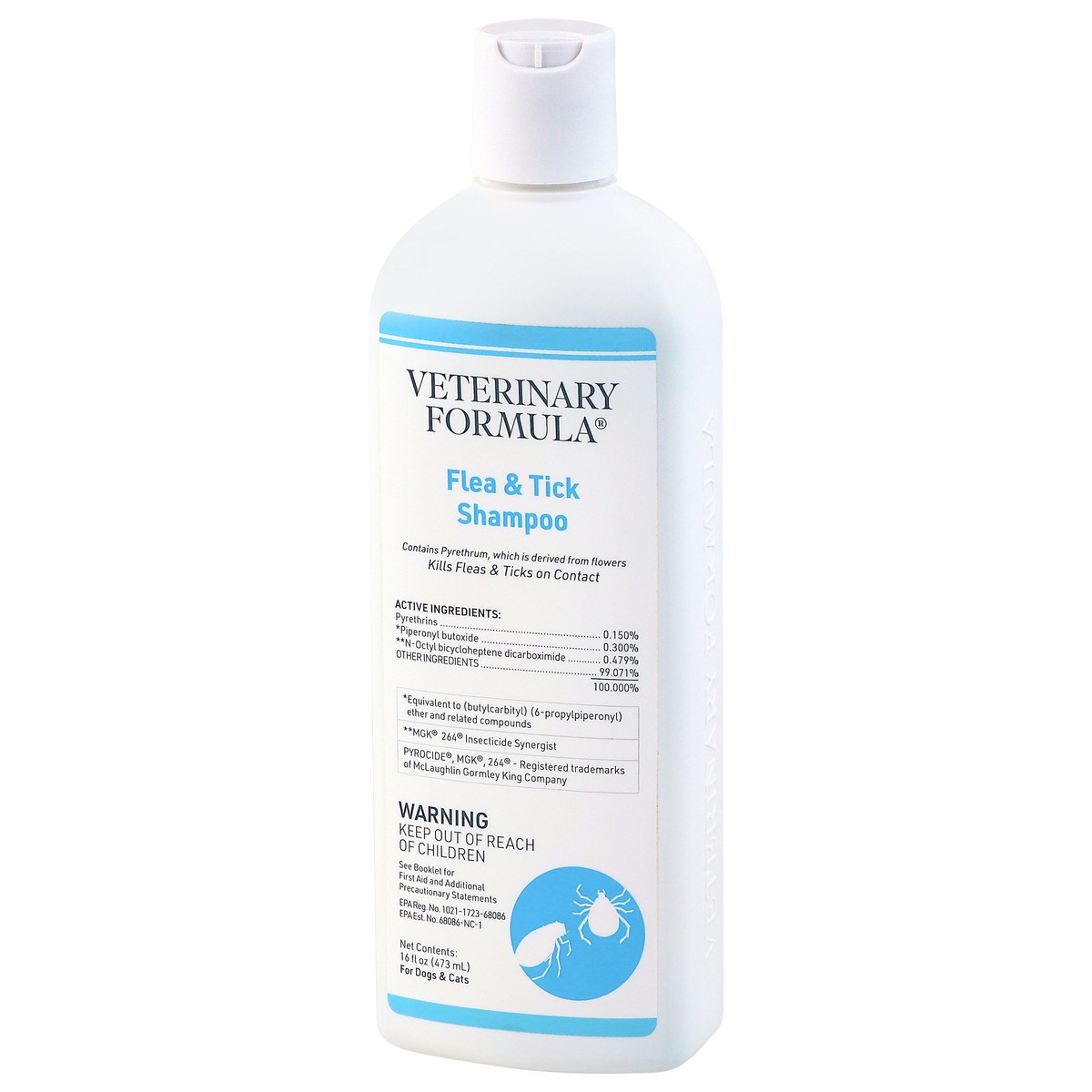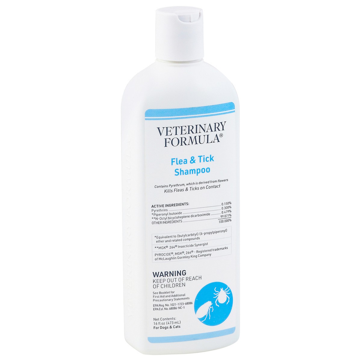 Veterinary Formula Clinical Care Flea & Tick Shampoo controls fleas & ticks on Contact. Gently cleanses & exfoliates skin & coat. Contains Pyrethrum, which is derived from flowers. Kills fleas and tic…