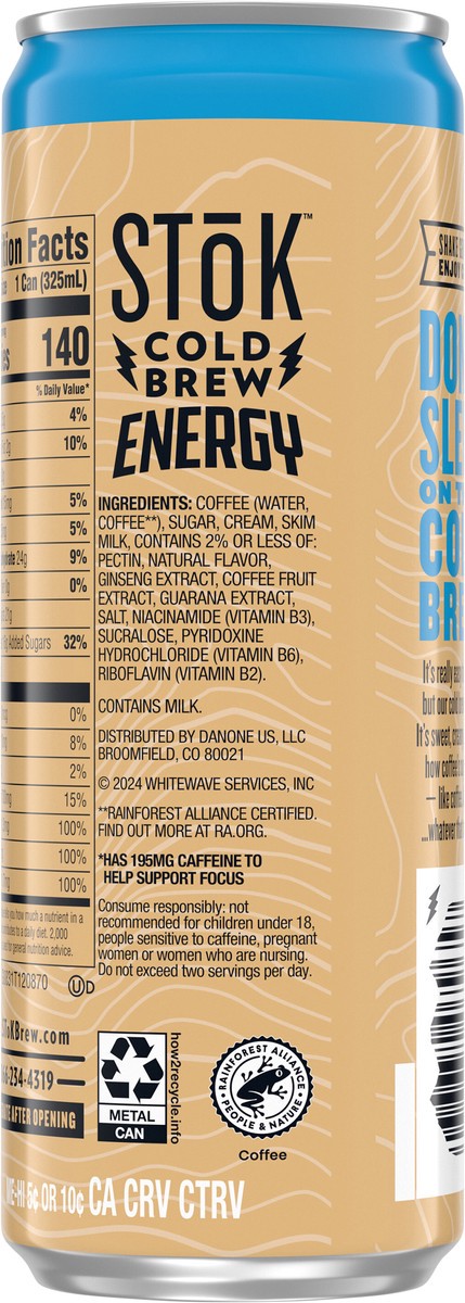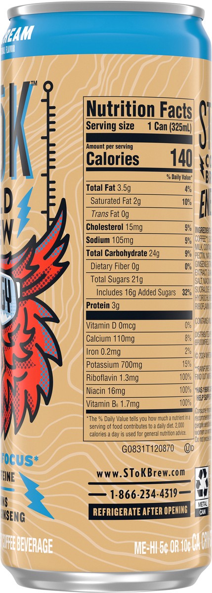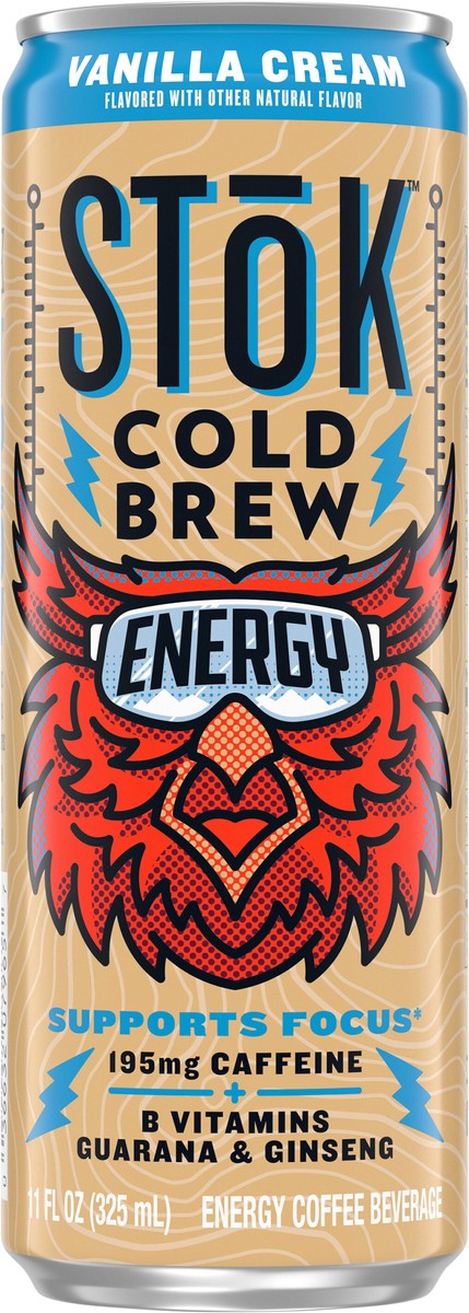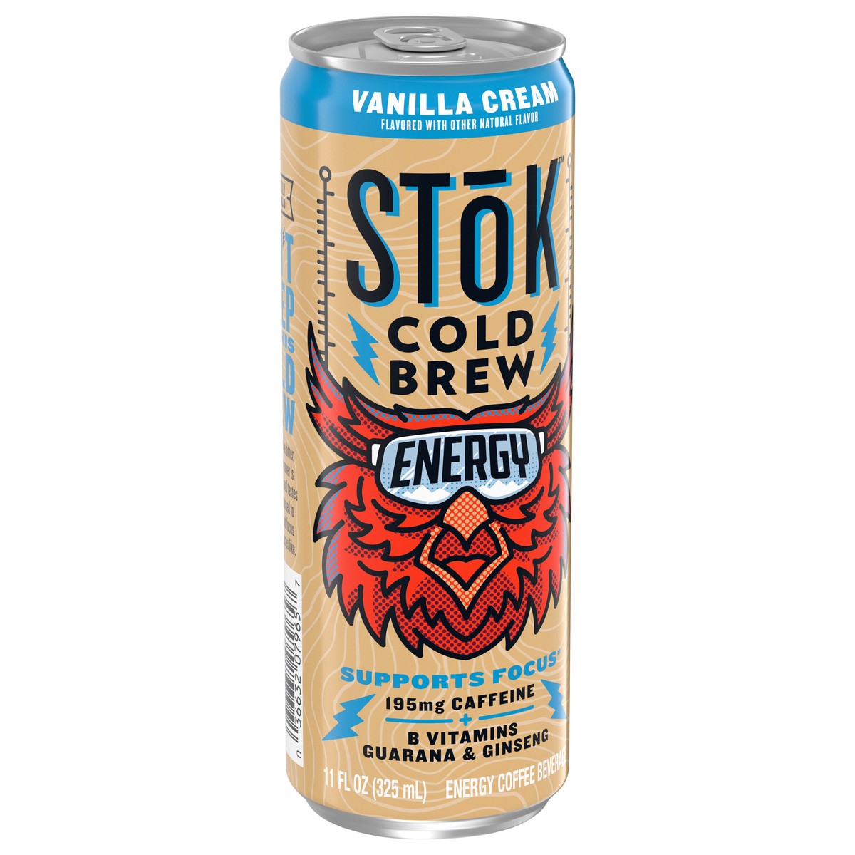 - COFFEE WITH A KICK: One 11 fl oz can of ready to drink SToK Cold Brew Energy Vanilla Cream with 195 mg caffeine per serving